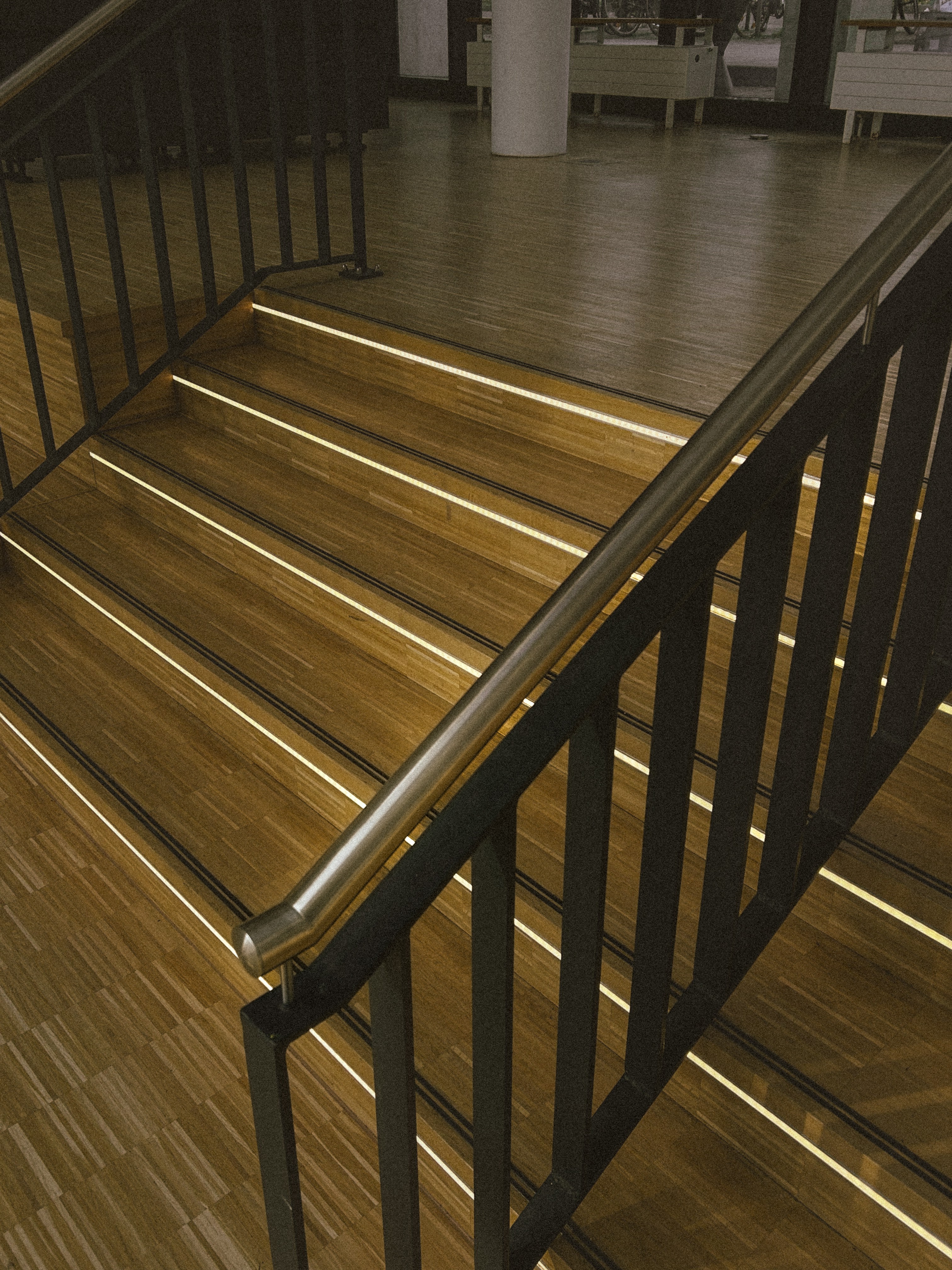 Die Funktion der Treppe ist nicht nur die des lotrechten Erschließungsbauteils, sie stellt auch ein wichtiges Gestaltungselement dar.